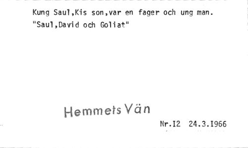 //// Kung Saul,Kis son,var en fager och ung man. "Saul,David och Goliat" //// Hemmets Vän //// Nr.I2 24.3.1966 ////