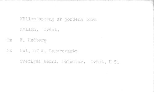 //// KUlan sprEng ur jordens byrm //// Ulan. Tvåst, //// Tx P. edberg //// lk 1:el, af W, Lajercran-1;z //// Sveriges herrl, I-elodier, Tväst. Ti 5. ////