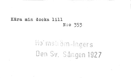 //// Kära min docka lill //// N: o 353 //// • - M-HIgerS //// Den Sv. Sången 1927 ////
