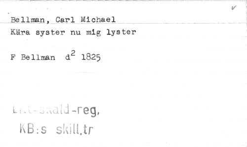 //// Bellman , Carl Michael Kära syster nu mig lyster //// F Bellman d2 1825 //// I.. &J-t-eg, //// KB:s skilt tr ////