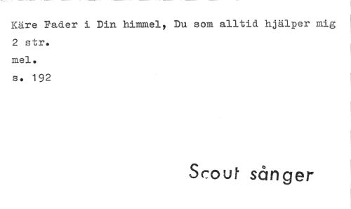 //// Käre Fader i Din himmely Du som alltid hjälper mig 2 str. //// mel. //// s. 192 //// Scout sånger ////