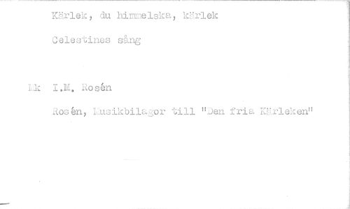 //// Kärlek, du himmelska, k,Jrlek Celestines sång //// Lk I.M. Rosén //// Ros €n, Lusikbilagor till "Den fria Krleken" ////