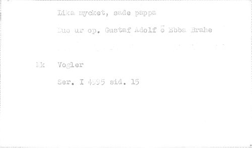 //// Lika mycket, sade pappa //// uo ur op. Gustaf Adolf bba rahe //// L1,c Vogler //// ,-Jer. 1 sid. 15 ////