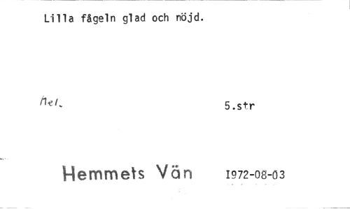//// Lilla fågeln glad och nöjd. //// hei, 5.str //// Hemmets Vän 1972-08-Ö3 ////