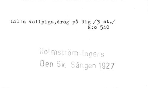 //// Lilla vallpiga,drag på dig /3 st. //// /N:o 540 //// Ho!.msrörn-Inpers //// Den Sv. Sången 1927 ////