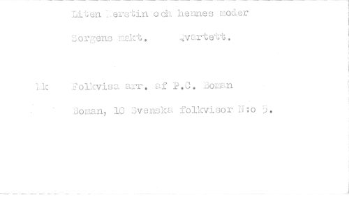 //// Liten i_erstin och hennes moder Sorgens makt. „,vart, //// 2o1kvisa arr, af P.C. Boman //// Boman, 10 Svenska folkvisor ri:o 5, ////