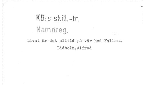 //// KB:s //// Namnreg. //// Livat är det alltid på vår hed Fallera //// Lidholm,Alfred //// r-- ////