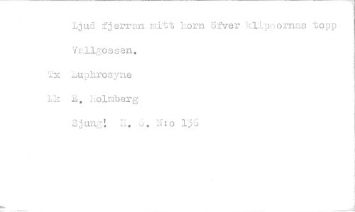 //// Ljud fjerran mitt Lom öfver Uipornas topp Vallgossen. //// '23c-„åup1irosyne //// 1,1c Lblmberg //// Sjung: j. N:o 136 ////