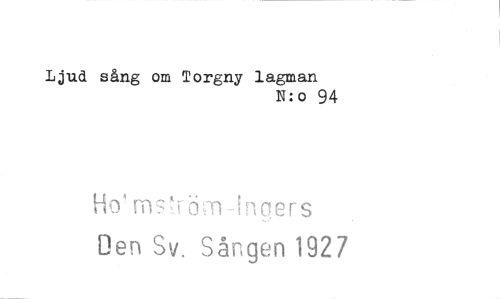 //// Ljud sång om Torgny lagman //// N:0 94 //// tio"mskörn-inc!ers //// Den Sv. Sången 1927 ////