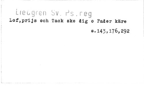 //// Liegren Sv. rs.reg //// Lof,prijs och Tack ske dig o Fader käre //// 6.143,176,292 ////