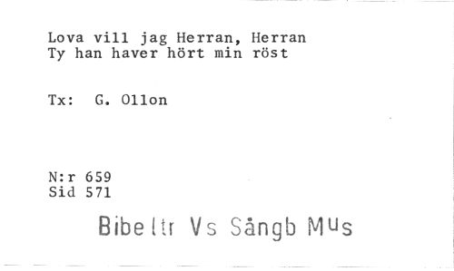 //// Lova vill jag Herran, Herran Ty han haver hört min röst //// Tx: G. 011on //// N:r 659 //// Sid 571 //// Bibe ltr Vs Sångb Mus ////