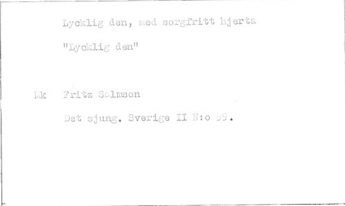 //// Lycklig den, laed sorgfritt hjerta "Lycklig den" //// Lik Fidtz Salmson //// Det sjung, Sverige II Nto jC..). ////