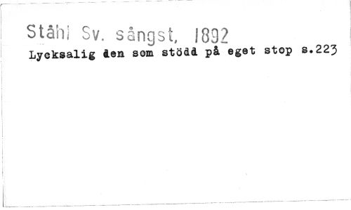 //// Ståh; Sv. sångst, 1892 //// Lycksalig den som stödd på eget stop s.223 ////
