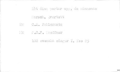 //// IÅt dina portar upp, du minnenas //// rärsch, ,..vartett 0.E. 2ahlerantz J.C.F. haeffner //// 100 svenska sånger 1. N:o 23 ////