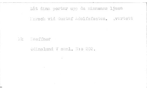 //// Låt dina portar upp du minnenas ljusa larsch vid Gustaf Adolfsfesten. ,martett //// "Laeffner • //// Odinslund V saml. N:o 202. ////