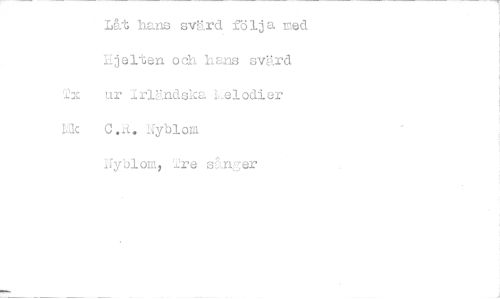 //// - Låt hans svärd följa med //// Ejelten och hans svärd Tx ur Irindska Lslodier hk C.A. Nyblom //// Nyblom, 2re sånger ////