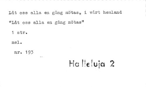 //// Låt oss alla en gång mötas,, i vårt hemland "Låt oss alla en gång mötas" //// 1 str. //// mel. //// nr. 193 //// Ha ula 2 ////
