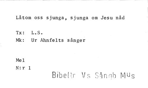 //// Låtom oss sjunga, sjunga om Jesu nåd //// Tx: L.S. //// Mk: Ur Ahnfelts sånger //// Mel N:r 1 //// Biberk Vs Sånn MUs ////