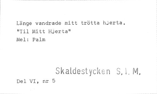 //// Länge vandrade mitt trötta hjerta. "Til Mitt HJerta" //// Mel: Palm //// Skaidestyde- n S, 1. M, //// Del VI, nr 5 ////