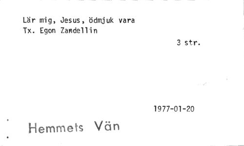 //// Lär mig, Jesus, ödmjuk vara Tx. Egon Zandellin //// 3 str. //// 1977-01-20 //// Hemmets Vän ////