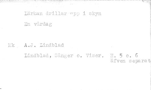 //// Lärkan drillar mpp i skyn En vårda g //// Dik A . J . Lindblad //// Lindblad , Sånger c,. Vis or . H. 5 o, 6 //// äfven s eparat ////