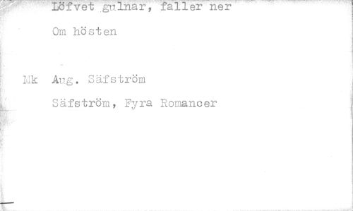 //// Löfvet J.2-lnar, faller ner Om hösten //// Idk Aug. Säfström //// Säfström, Fyra Romancer ////