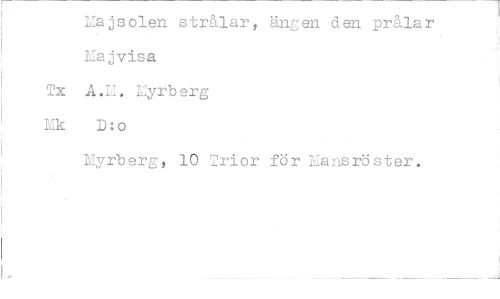 //// Majsolen strålar, ängen den prålar Majvisa //// Tx A.M. Lyrberg //// Mk D:o //// Myrberg, 10 Trior för Eansröster. ////