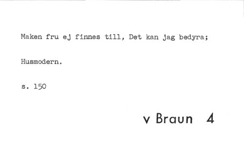 //// Maken fru ej finnes till, Det kan jag bedyra; Husmodern. //// s. 150 //// v Braun 4 ////