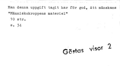//// Man denna uppgift tagit har för god, Att mänskans "Människokroppens materiel" //// 10 str. //// s. 34 //// G8 as visc". ////