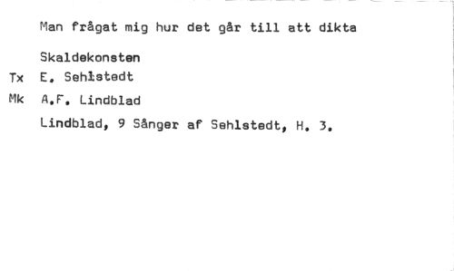 //// Man frågat mig hur det går till att dikta //// Skaldekoneten Tx E. Sehlstedt //// Mk A.F. Lindblad //// Lindblad, 9 Sånger af Sehlstedt, H. 3. ////