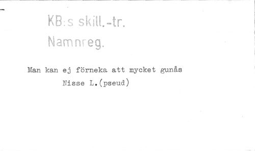 //// KB:s //// Namnreg. //// Man kan ej förneka att mycket gunås Nisse L.(pseud) ////