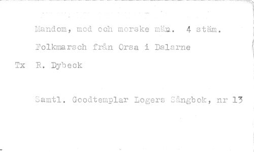 //// Mandom, mod och morske mä.u. 4 stäm. Folkmarsoh från Orsa i Dalarne //// Tx R. Dybeok //// Samtl. Goodtemplar Logers Sångbok, nr 13 ////