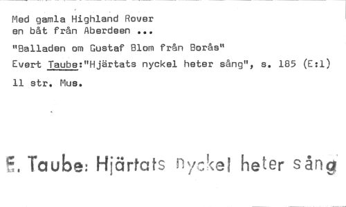 //// Med gamla Highland Rover //// en båt från Aberdeen ... //// "Balladen om Gustaf Blom från Borås" //// Evert Taube:"Hjärtats nyckel heter sång", s. 185 (E:1) 11 str. Mus. //// 5. Taube: Hjärtats ny,,kei heter sång ////