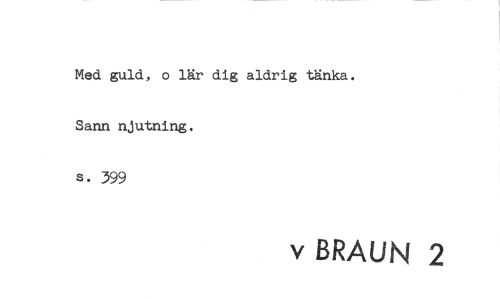 //// Med guld, o lär dig aldrig tänka. Sann njutning. //// s. 399 //// v BRAUN 2 ////