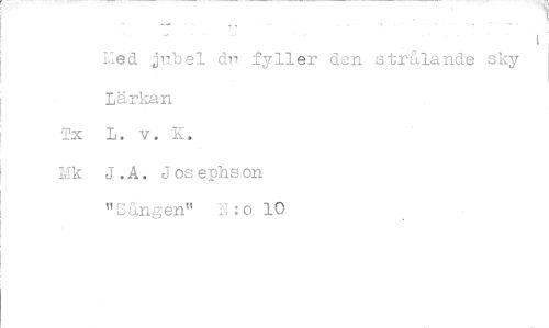 //// Med jnbel dn fyller dan strålande sky //// Lärkan //// mx L. v. K. //// Mk J.A. Josephson "Sången" N:o 10 ////