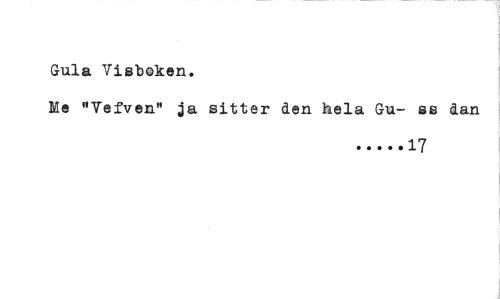 //// Gula Visboken. //// Me "Vefven" ja sitter den hela Gu- ss dan //// 17 ////