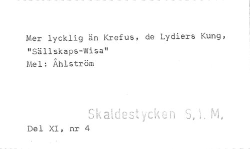 //// Mer lycklig än Krefus, de Lydiers Kung, "Sällskaps-Wisan //// Mel: Åhlström //// c, n 5, NI //// • 1 //// Del XI, nr 4 ////