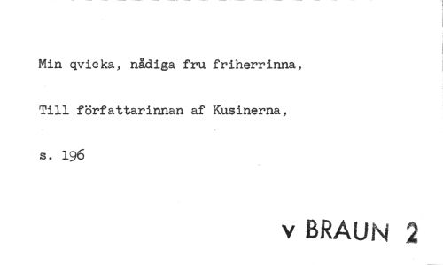 //// Min qvicka, nådiga fru friherrinna, Till författarinnan af Kusinerna, s. 196 //// v BRAUN 2 ////