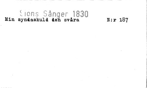 //// torrs, Sånger 1830 N:r 187 //// Min syndaskuld dela svåra ////