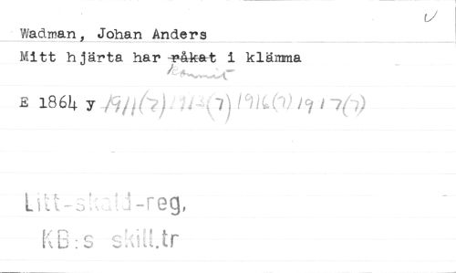 //// Wadman Johan Anders //// Mitt h järta har -taitka-t i klämma //// -1,- //// E 18614 Y Hi/69 7) i Cli‘.0) / 9 i 7(-7) //// .. //// i //// L r 1.9 g //// r . //// ' ////