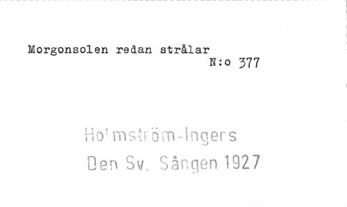 //// Morgons ol en redan strålar //// N o 377 //// ;;,o, mström ingers //// Oen Sv: Sången 1927 ////