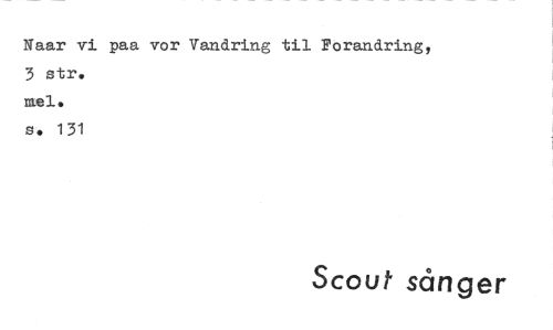 //// Naar vi paa vor Vandring til Forandring, 3 str. //// mel. //// s. 131 //// Scout sånger ////