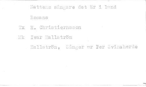//// Nattens sånare det är i lnnd //// Romans //// Tx H. Christiernsson //// Mk Ivar Hallström //// Hallström, Sånger nr Per Svinaherde ////