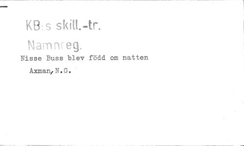 //// KB e, skitl.-tr. //// ob, //// u, g, //// Nisse Buss blev född om natten Axman,N.G. ////