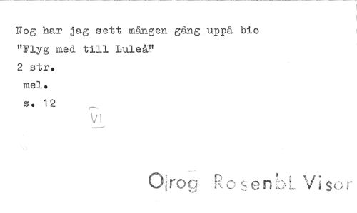 //// Nog har jag sett mången gång uppå bio "Flyg med till Luleå!' //// 2 str. //// mei. //// s. 12 //// V I //// Oiron Rosenn Visor ////