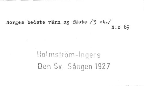 //// Norges bedste värn og fäste /3 st. //// /N:o 69 //// Ho msträml gers //// Oen Sv, Sången 1927 ////