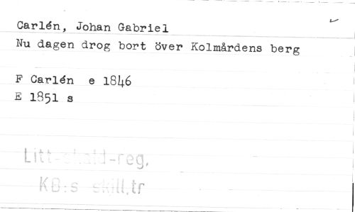//// Carldn, Johan Gabriel //// Nu dagen drog bort över Kolmårdens berg //// F Carldn e 1846 E 1951 s ////