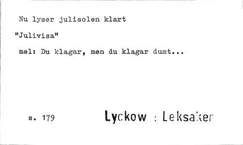 //// Nu lyser julisolen klart //// "Julivila" //// mel: Du klagar, men du klagar dumt... //// s. 179 Lyckow : LeksaAr ////