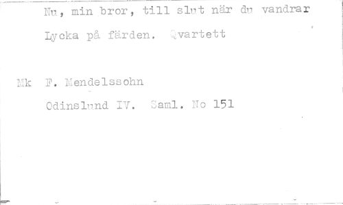 //// Nu l, min bror, till slut när dn vandrar Lycka på färden. < vartett //// Lik ly. Mende les ohn //// Odinslulnd IV. aml. U0 151 ////
