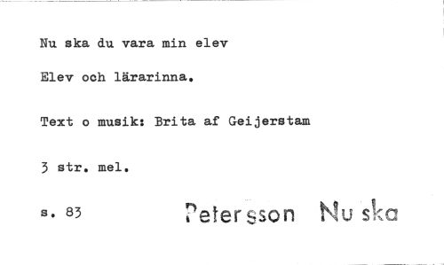 //// Nu ska du vara min elev Elev och lärarinna. //// Text o musik: Brita af Geijerstam 3 str. mel. //// s. 83 reter bson Nu s,c! ////